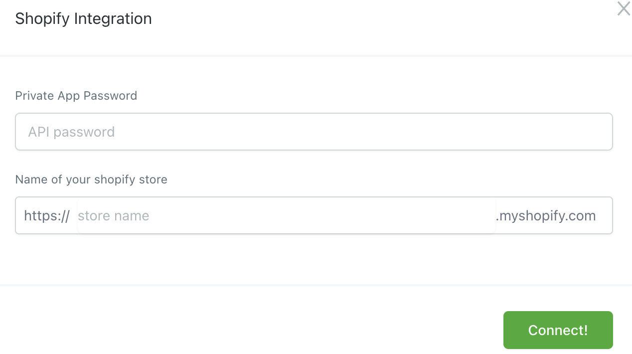 3. In the popup window, paste the previously copied password and type out your Shopify App name.