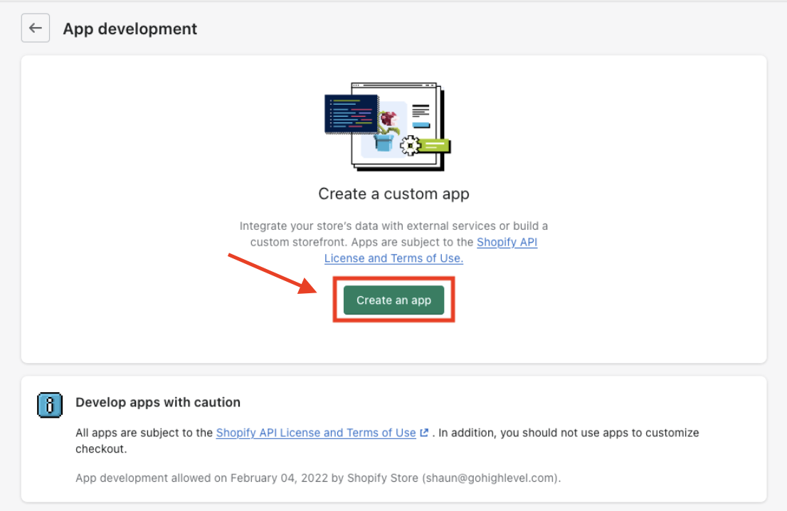 Note: If you have already enabled private app development, you’ll be directed straight to the create/develop apps button and won’t need to re-accept the terms/permissions.